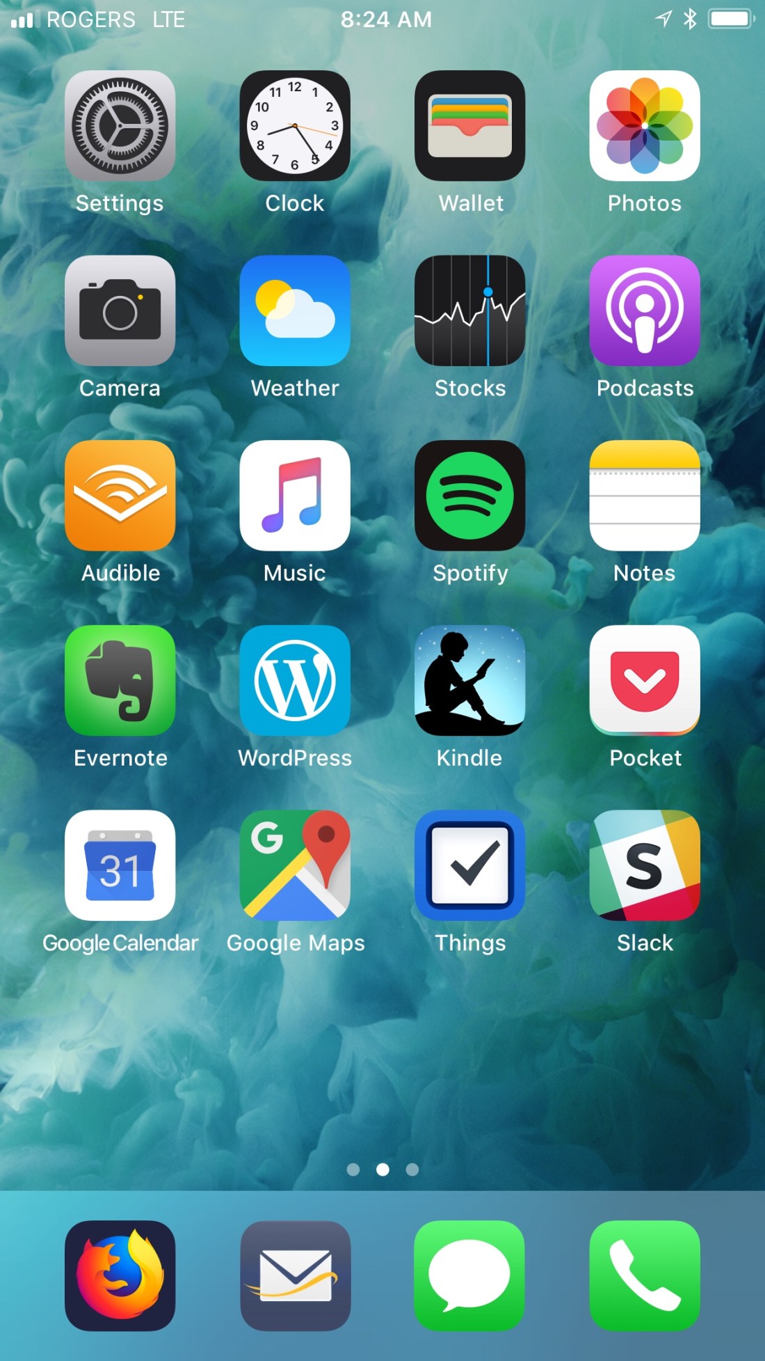 I use an iPhone 6S Plus (yes, still), so you’ll note the larger screen real estate. But I don’t fill it up completely. This is intentional. I only put something on my homescreen if I use it on a daily basis or I need quick access to it (e.g. Google Maps when I’m getting in the car). There’s no reason to fill up the whole screen if I don’t need to. That only makes it harder to find what I’m looking for, or worse, increases the likelihood that I’ll get distracted from my original intention.